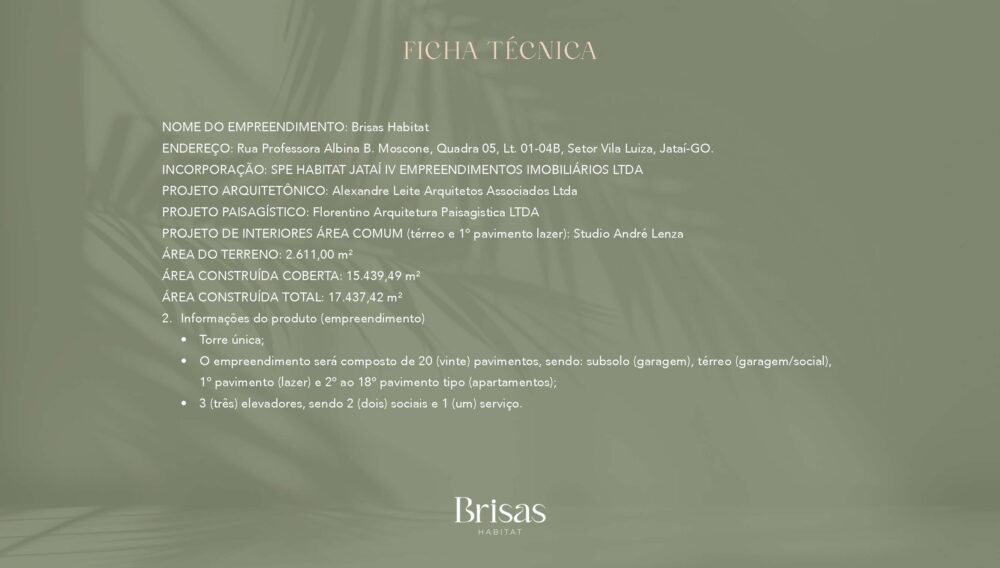 Descubra o Brisas Habitat o lugar perfeito para você e sua família em Jataí/GO. Apartamentos à partir de 81 até 111m², com até 3 suítes. Piscina, academia e área de lazer completa. Conforto, segurança e qualidade de vida. Localização privilegiada, ao lado do Parque das Brisas. Seu sonho de viver bem começa aqui! Fale com um de nossos corretores agora mesmo.